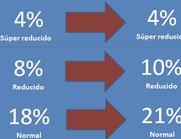 El tipo general pasa del 18% al 21% y el tipo reducido del 8% al 10%. El tipo reducido del IVA (10%) se aplica a la mayoría de productos alimenticios, productos sanitarios, transporte terrestre de viajeros y equipajes( aéreo y marítimo también) y al turismo en general, que había reclamado que no se subiera el tributo. También están sujetos a este tipo reducido las entradas a espectáculos culturales (cines, teatros, circos, conciertos, bibliotecas, museos, exposiciones). El tipo superreducido para bienes de primera necesidad afortunadamente no se ha alterado, se mantiene en el 4%.